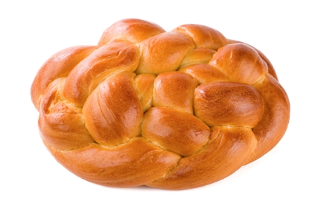 When risen, knead again. The roll out with your hands into a fat roundish sausage shape. Cut up the length of the dough with a sharp knife. Plait (braid) the dough and seal at the end with the egg mixture.