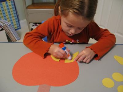 4. Cut out a yellow pumpkin mouth and allow child to glue it onto the front for the face.